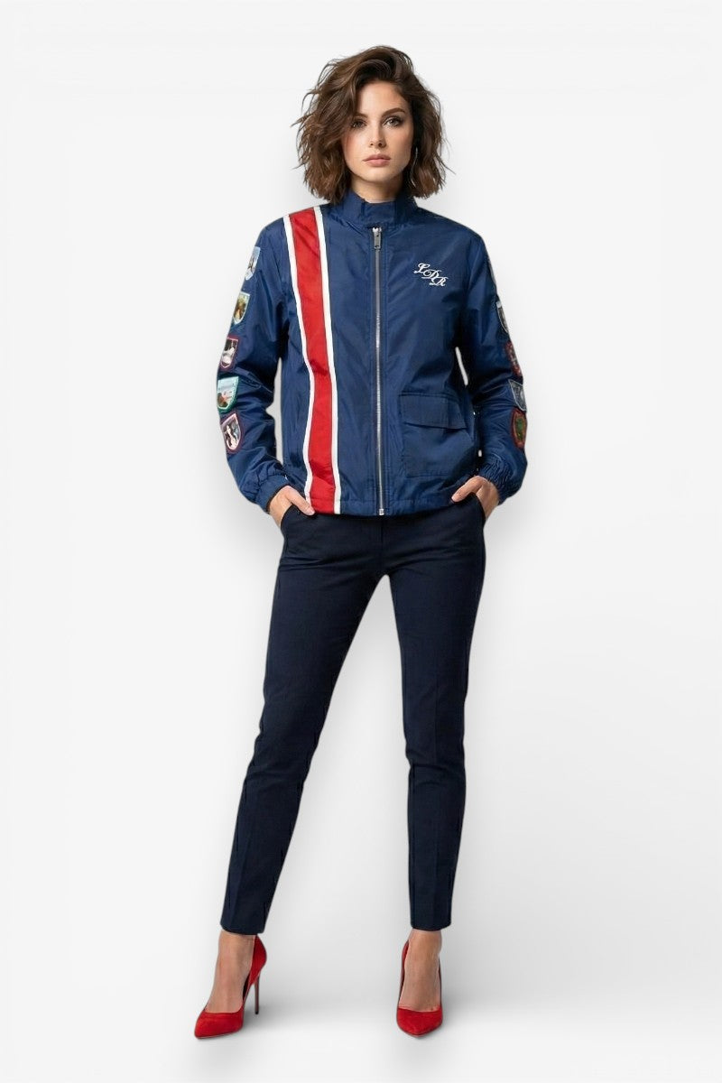 A bold streetwear jacket inspired by classic racing style, featuring detailed patches and embroidered accents throughout. Designed with a clean zip-up front and a structured silhouette, it’s perfect for all-season wear, blending vintage motorsport energy with modern unisex fashion for standout everyday looks.
