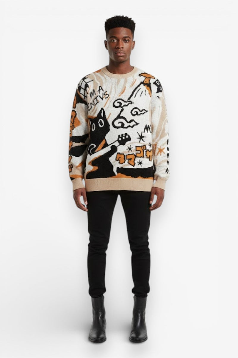 Retro Cartoon Knit Pullover Sweater
